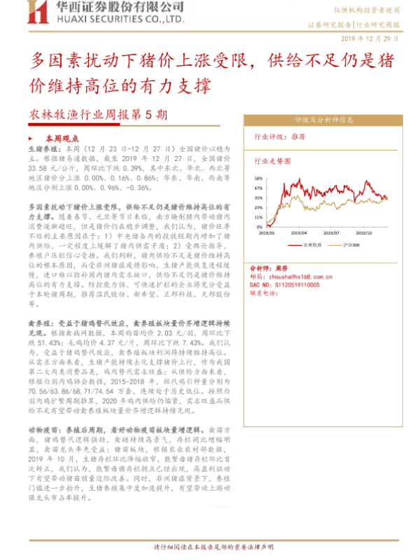 【华西证券】【20191229】多因素扰动下猪价上涨受限,供给不足仍是猪价维持高位的有力支撑-16页