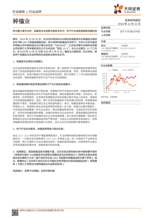 【天风证券】【20191231】种业重大事件点评:转基因玉米拟获生物安全证书,种子行业或将迎崭新发展阶段-2页