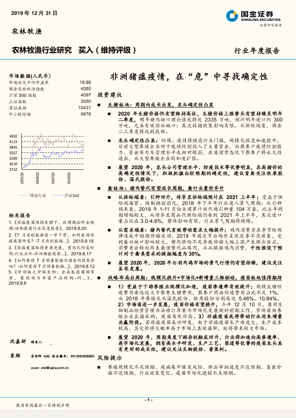 【国金证券】【20191231】农林牧渔行业研究:非洲猪瘟疫情,在“危”中寻找确定性-24页