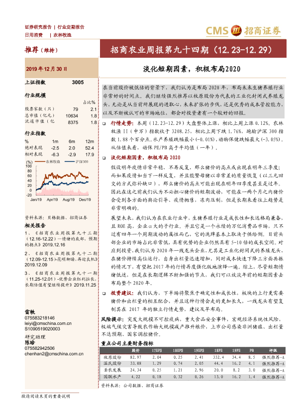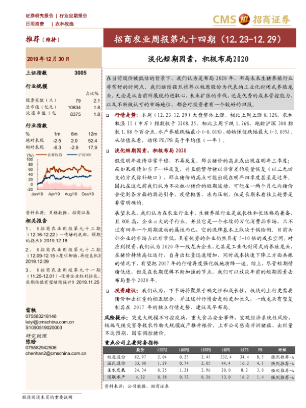 2020展望 农业周报 市场分析 投资建议 生猪养殖