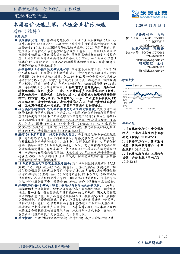 【东吴证券】【20200105】20200105-东吴证券-农林牧渔行业:本周猪价快速上涨,养殖企业扩张加速-20页