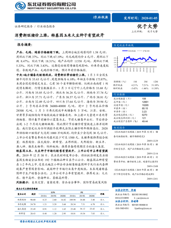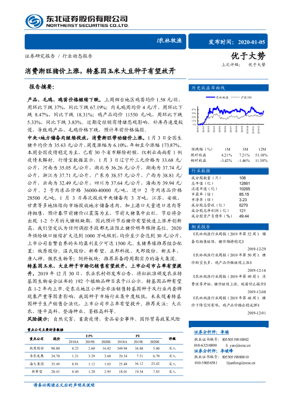 【东北证券】【20200105】消费渐旺猪价上涨,转基因玉米大豆种子有望放开-9页