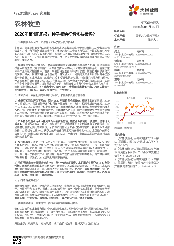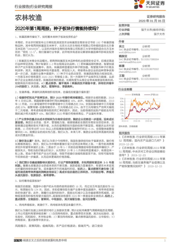 【天风证券】【20200105】农林牧渔2020年第1周周报:种子板块行情能持续吗?-15页