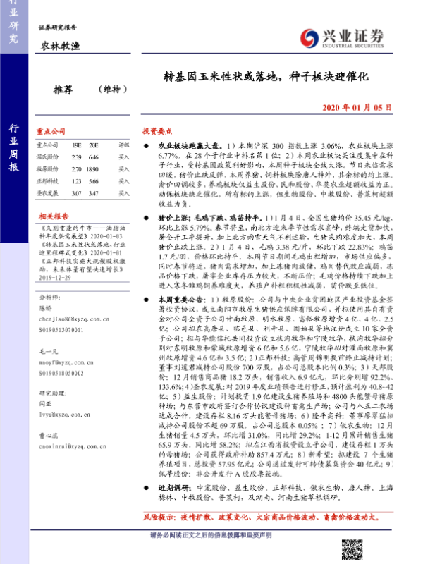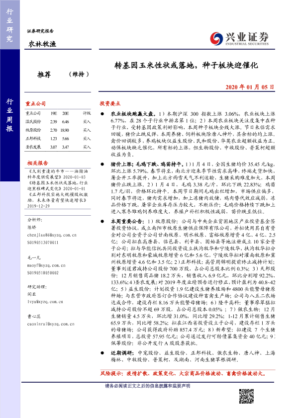 【兴业证券】【20200105】20200105-兴业证券-农林牧渔行业周报:转基因玉米性状或落地,种子板块迎催化-15页