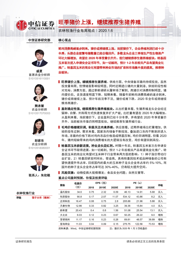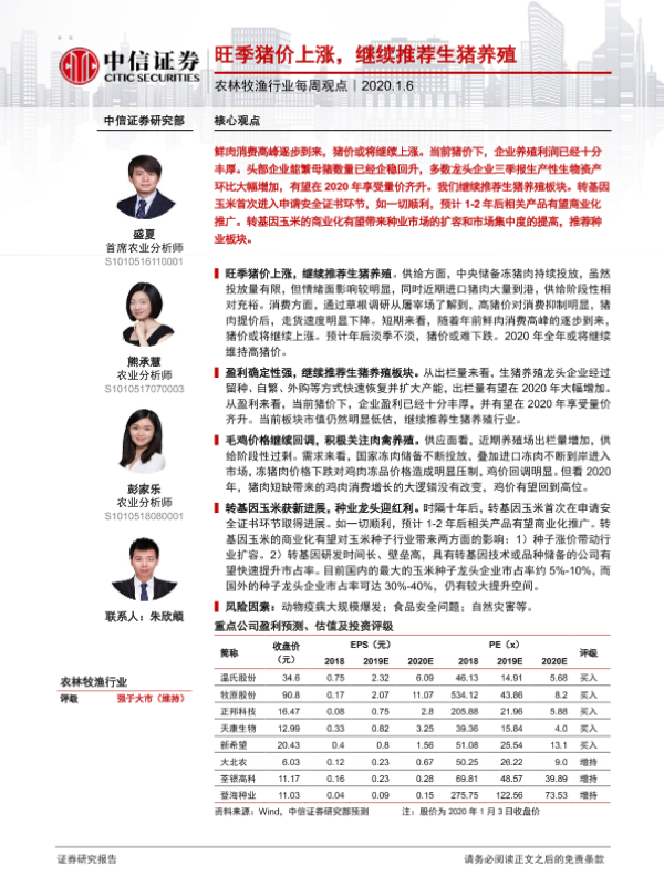 【中信证券】【20200106】农林牧渔行业每周观点:旺季猪价上涨,继续推荐生猪养殖-6页