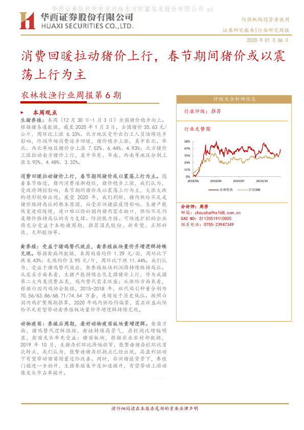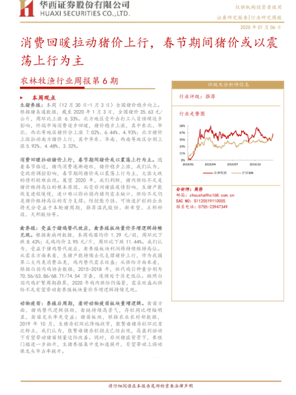 【华西证券】【20200106】农林牧渔行业周报第6期:消费回暖拉动猪价上行,春节期间猪价或以震荡上行为主-16页