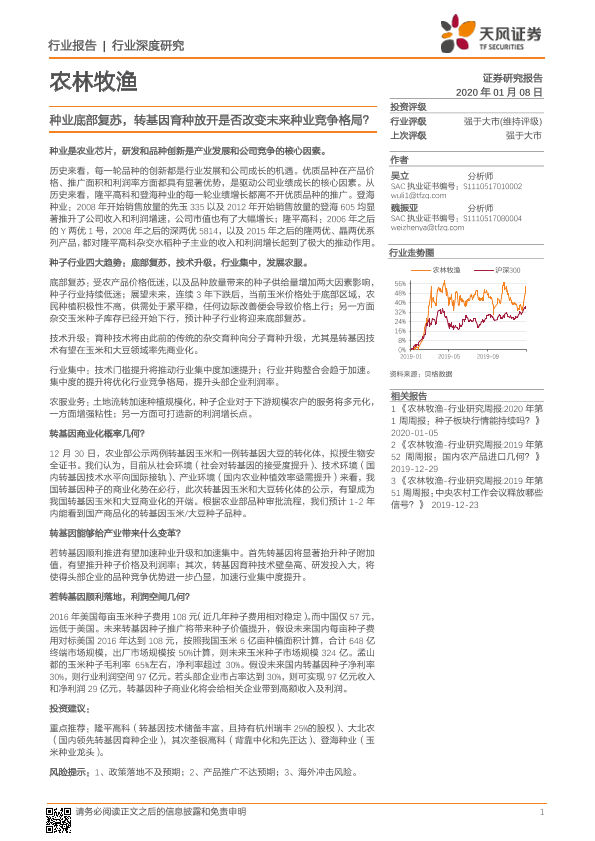 【天风证券】【20200108】农林牧渔行业深度研究:种业底部复苏,转基因育种放开是否改变未来种业竞争格局?-25页