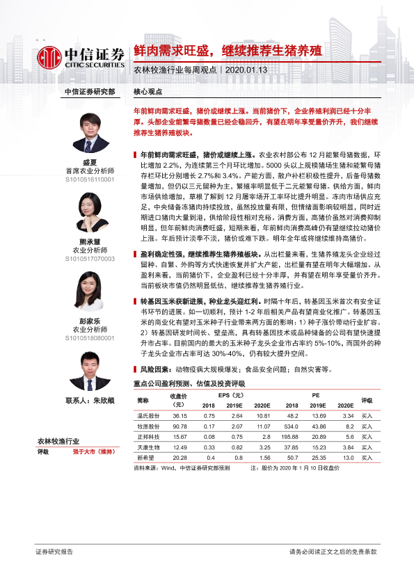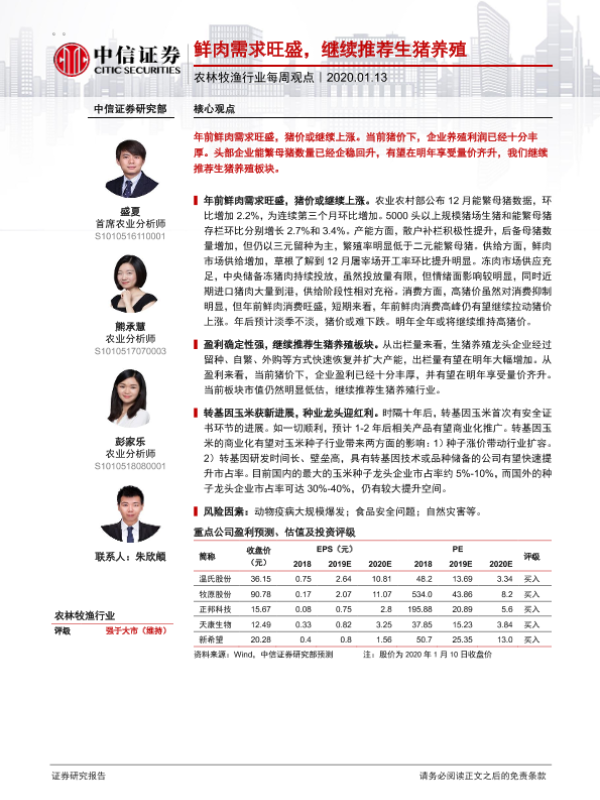【中信证券】【20200113】农林牧渔行业每周观点:鲜肉需求旺盛,继续推荐生猪养殖-6页