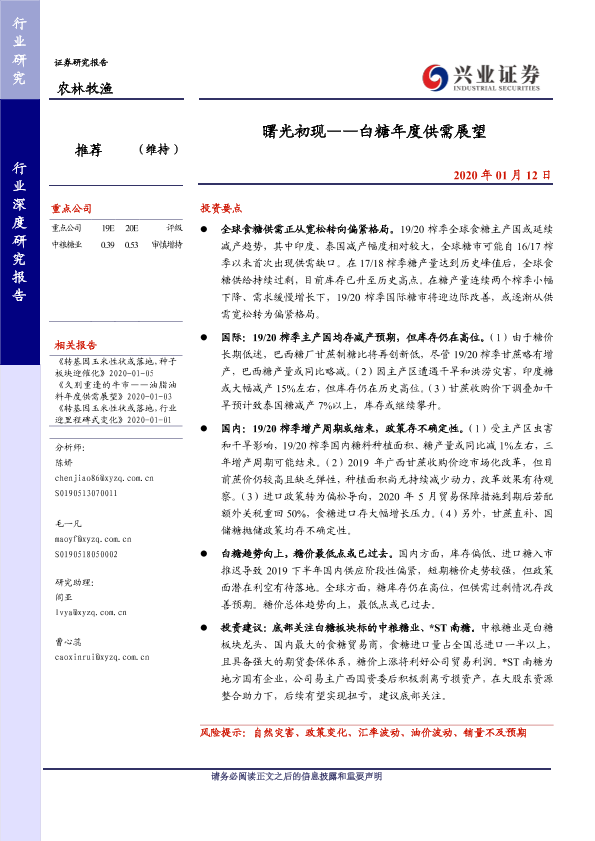 【兴业证券】【20200112】曙光初现——白糖年度供需展望-24页