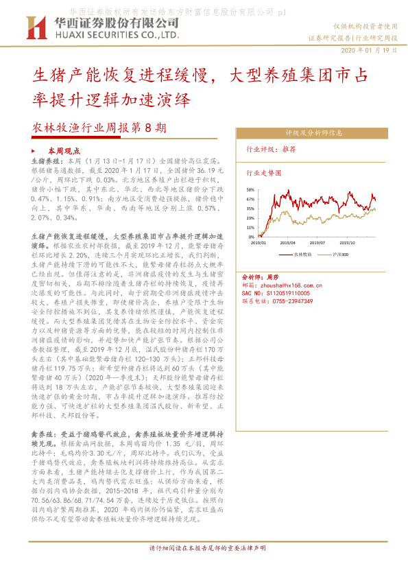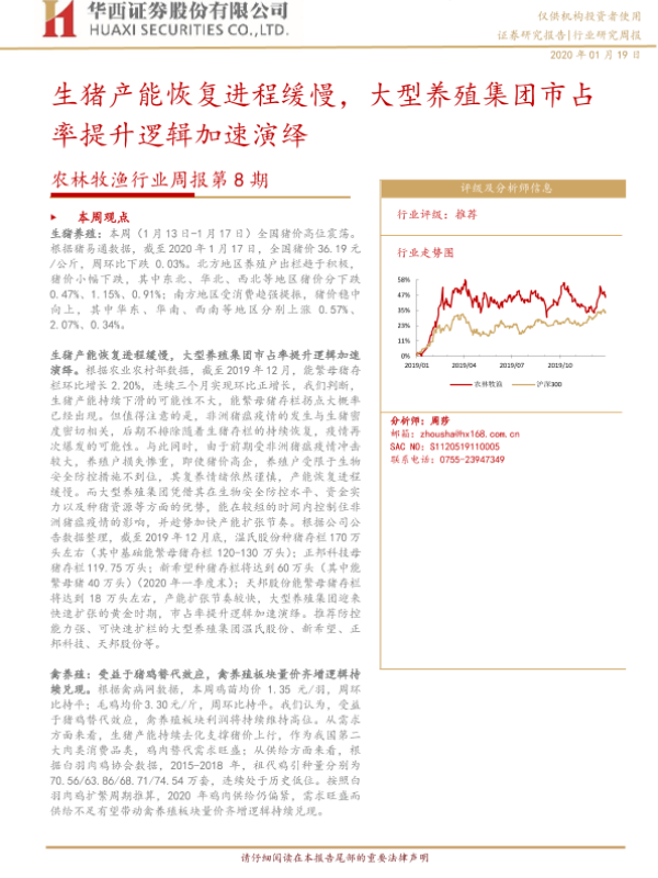 【华西证券】【20200119】农林牧渔行业周报第8期:生猪产能恢复进程缓慢,大型养殖集团市占率提升逻辑加速演绎-16页