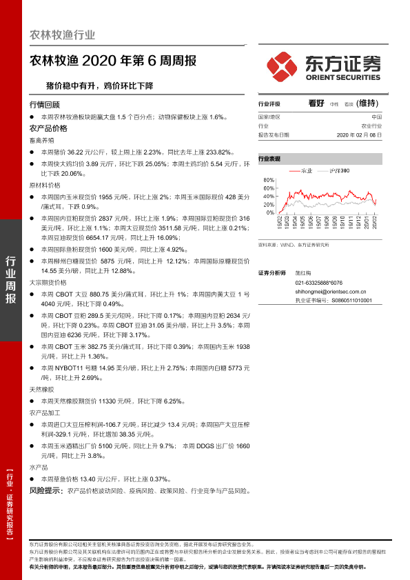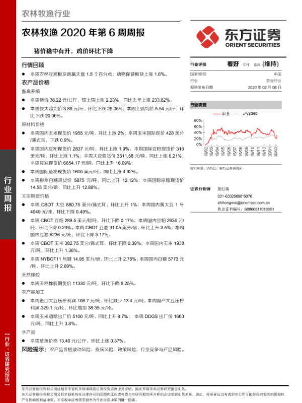 【东方证券】【20200208】农林牧渔行业2020年第6周周报:猪价稳中有升,鸡价环比下降-16页