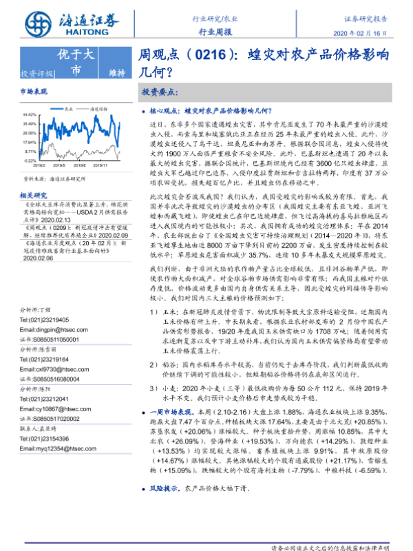 【海通证券】【20200216】农业行业周观点:蝗灾对农产品价格影响几何?-5页