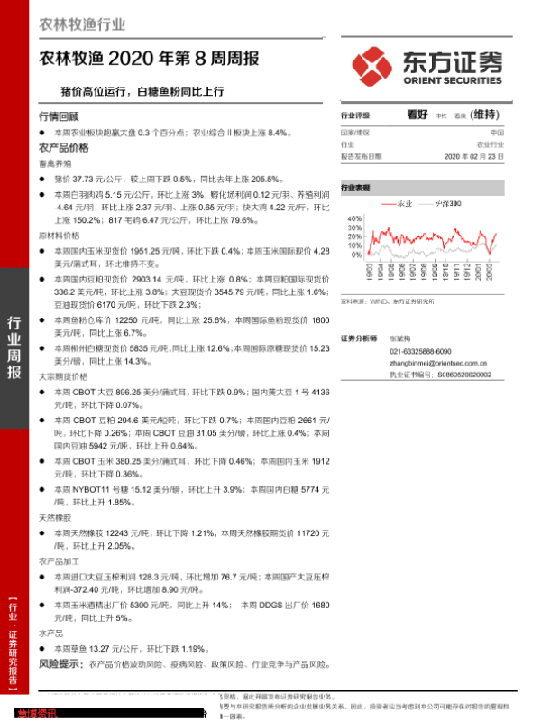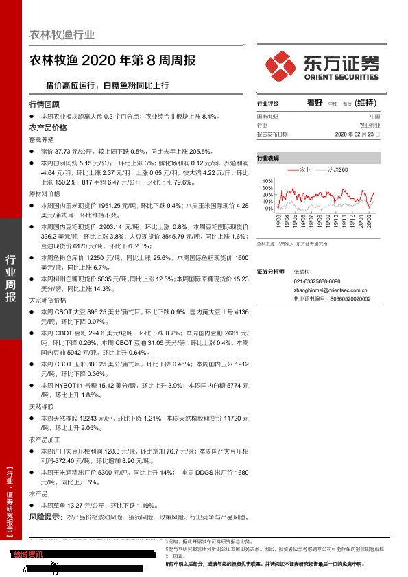 【东方证券】【20200223】农林牧渔2020年第8周周报:猪价高位运行,白糖鱼粉同比上行-17页
