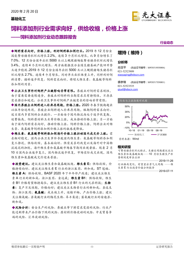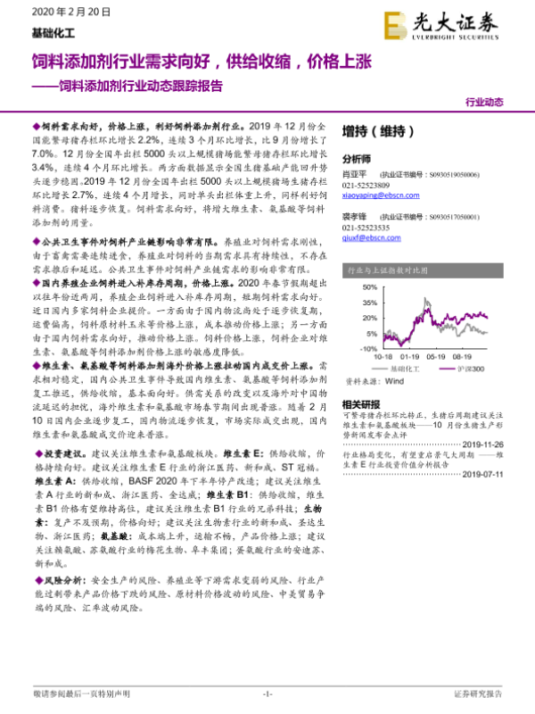 【光大证券】【20200220】饲料添加剂行业动态跟踪报告:饲料添加剂行业需求向好,供给收缩,价格上涨-10页