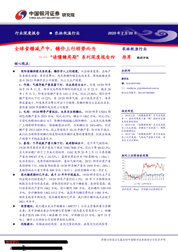 【银河证券】【20200220】全球食糖减产中,糖价上行顺势而为——“读懂糖周期”系列深度报告四-25页