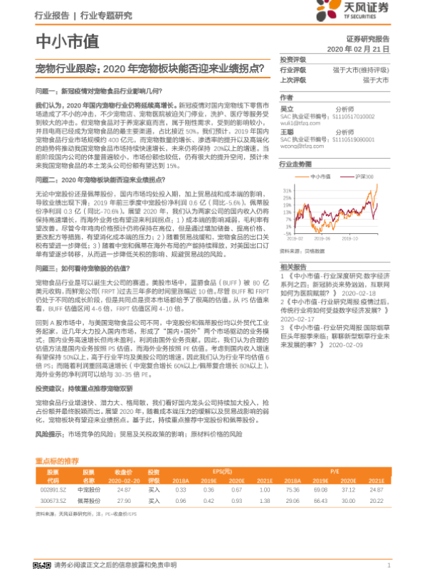 【天风证券】【20200221】20200221-天风证券-中小市值行业专题:宠物行业跟踪:2020年宠物板块能否迎来业绩拐点?-14页
