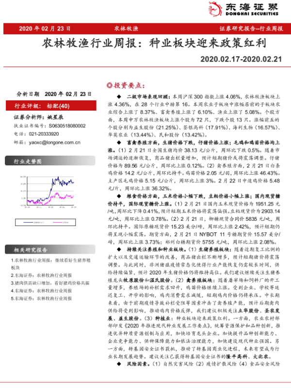 【东海证券】【20200223】20200223-东海证券-农林牧渔行业周报:种业板块迎来政策红利-9页