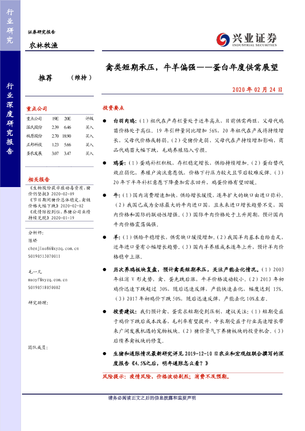 【兴业证券】【20200224】禽类短期承压,牛羊偏强——蛋白年度供需展望-33页
