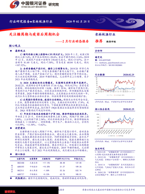 【银河证券】【20200225】农林牧渔行业2月行业动态报告:关注糖周期与疫苗后周期机会-18页