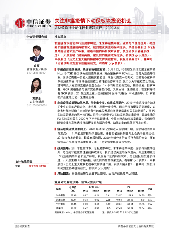 【中信证券】【20200304】农林牧渔行业动保行业跟踪点评:关注非瘟疫情下动保板块投资机会-3页
