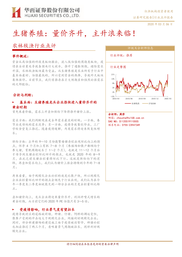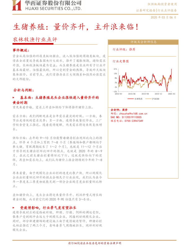【华西证券】【20200306】20200306-华西证券-农林牧渔行业点评:生猪养殖:量价齐升,主升浪来临!-5页