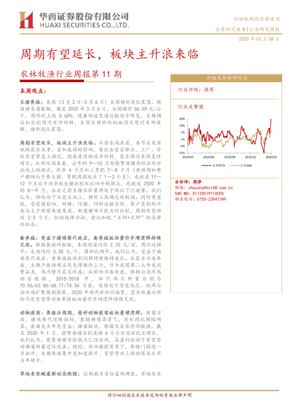 【华西证券】【20200308】20200308-华西证券-农林牧渔行业周报第11期:周期有望延长,板块主升浪来临-16页