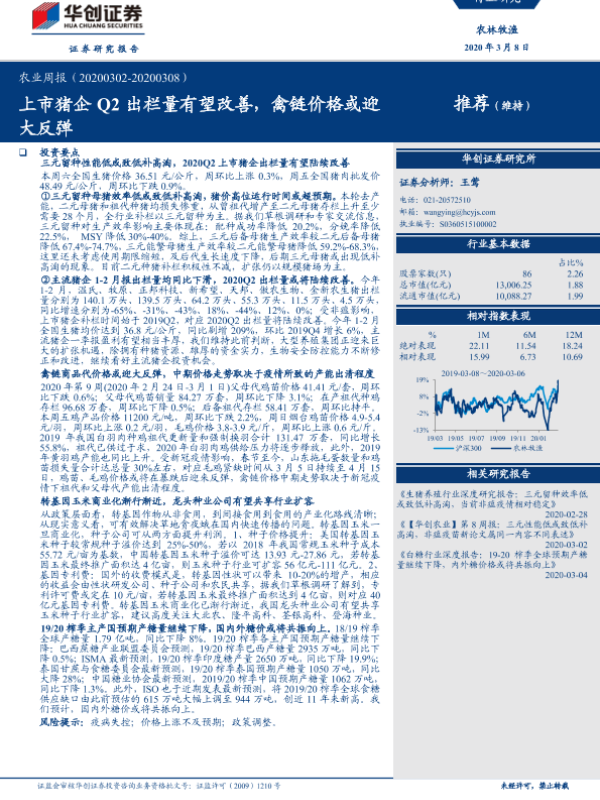 【华创证券】【20200308】20200308-华创证券-农业周报:上市猪企Q2出栏量有望改善,禽链价格或迎大反弹-44页