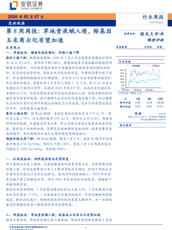 【安信证券】【20200307】20200307-安信证券-农林牧渔第8周周报:草地贪夜蛾入侵,转基因玉米商业化有望加速-21页