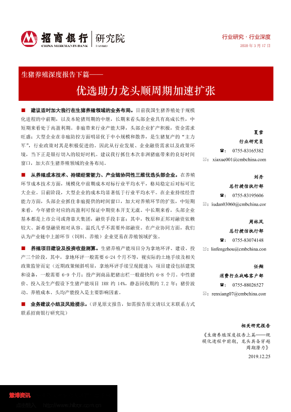 【招商银行】【20200317】生猪养殖深度报告下篇——优选助力龙头顺周期加速扩张-31页