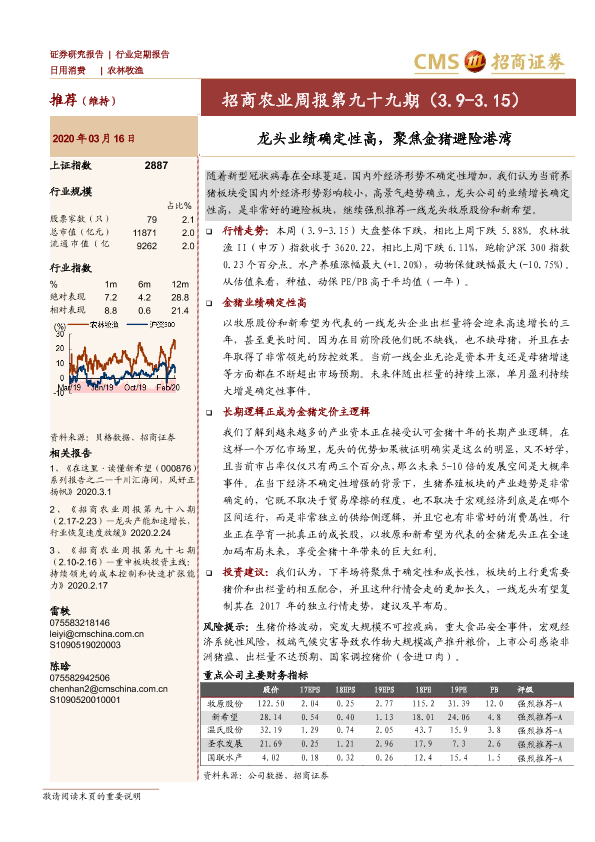 【海通证券】【20200316】农业周报第九十九期:龙头业绩确定性高,聚焦金猪避险港湾-25页