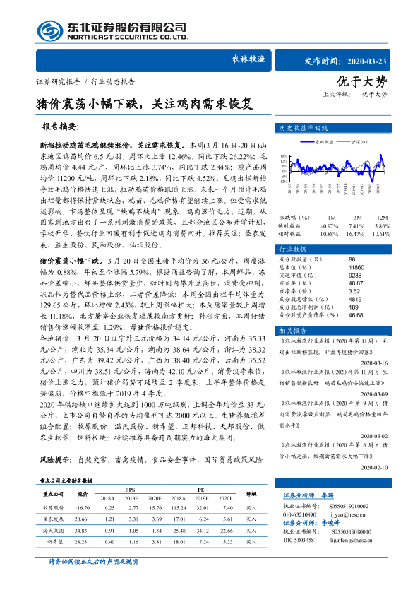 【东北证券】【20200323】20200323-东北证券-农林牧渔:猪价震荡小幅下跌,关注鸡肉需求恢复-9页