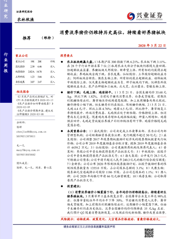 【兴业证券】【20200322】消费淡季猪价仍维持历史高位,持续看好养猪板块-15页