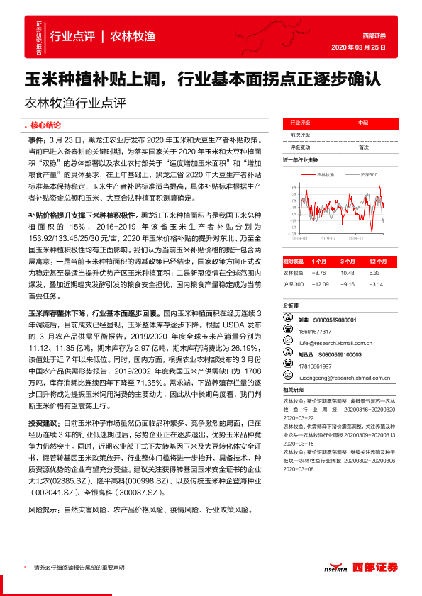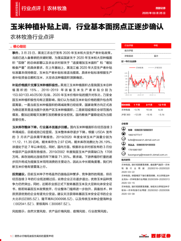【西部证券】【20200325】农林牧渔行业点评:玉米种植补贴上调,行业基本面拐点正逐步确认-3页