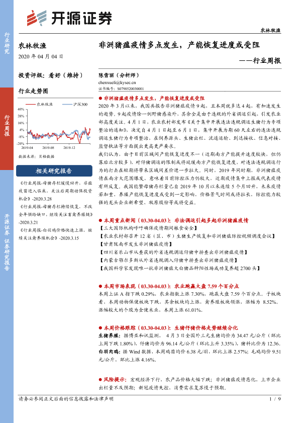 【开源证券】【20200404】20200404-开源证券-农林牧渔行业周报:非洲猪瘟疫情多点发生,产能恢复进度或受阻-9页