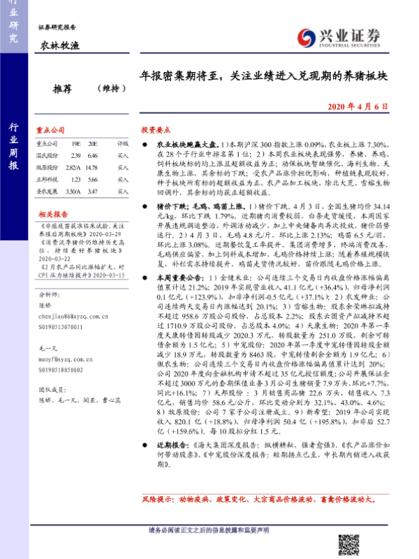 【兴业证券】【20200406】20200406-兴业证券-农林牧渔行业周报:年报密集期将至,关注业绩进入兑现期的养猪板块-15页