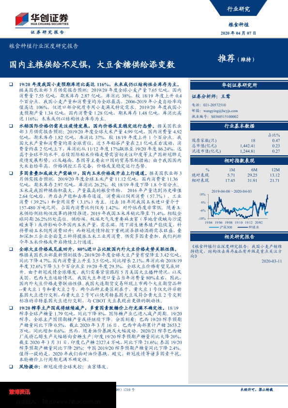 【华创证券】【20200407】20200407-华创证券-粮食种植行业深度研究报告:国内主粮供给不足惧,大豆食糖供给添变数-41页