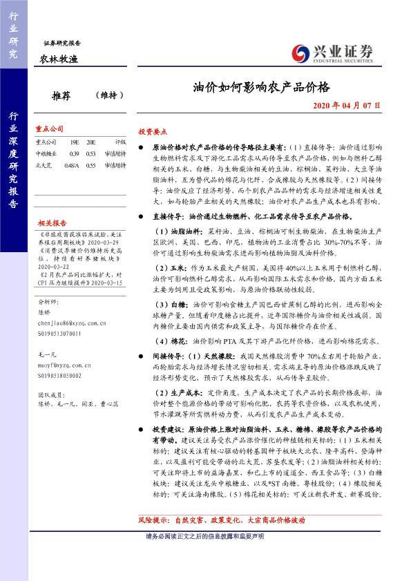 【兴业证券】【20200407】油价如何影响农产品价格-16页