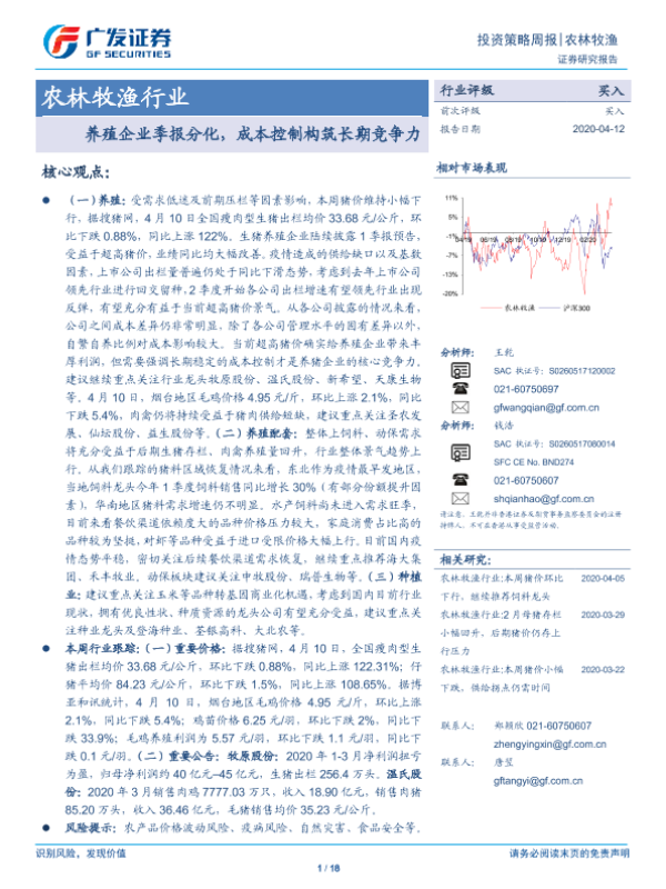 【广发证券】【20200412】20200412-广发证券-农林牧渔行业:养殖企业季报分化,成本控制构筑长期竞争力-18页