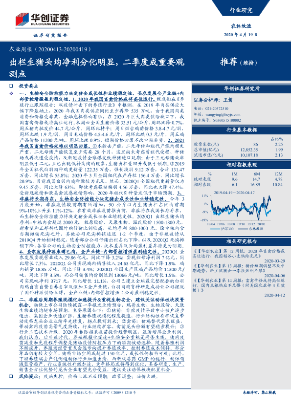 【华创证券】【20200419】20200419-华创证券-农业周报:出栏生猪头均净利分化明显,二季度成重要观测点-45页