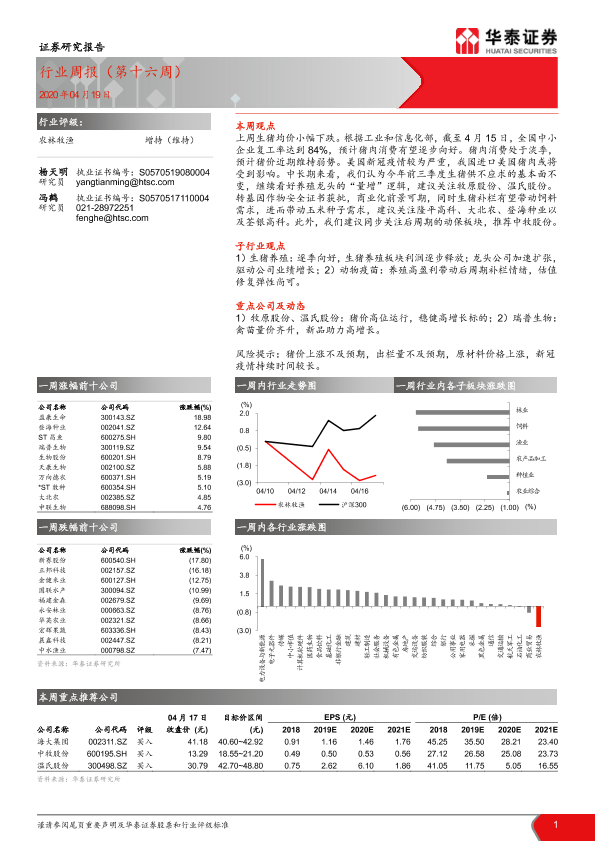 【华泰证券】【20200419】20200419-华泰证券-农林牧渔行业周报(第十六周)-13页