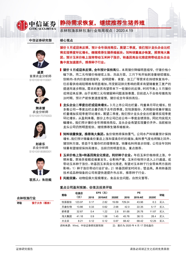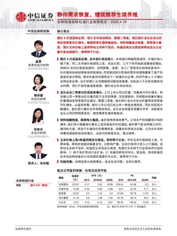 【中信证券】【20200419】农林牧渔行业每周观点:静待需求恢复,继续推荐生猪养殖-10页