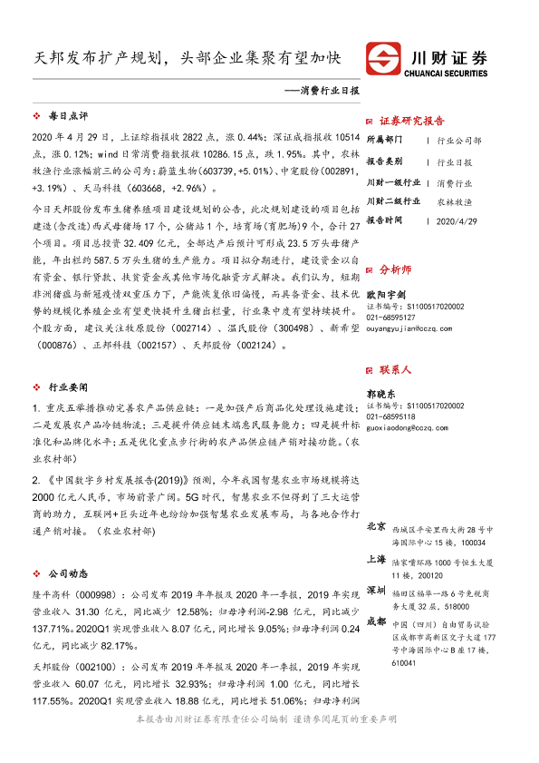 【川财证券】【20200429】消费行业日报:天邦发布扩产规划,头部企业集聚有望加快-3页