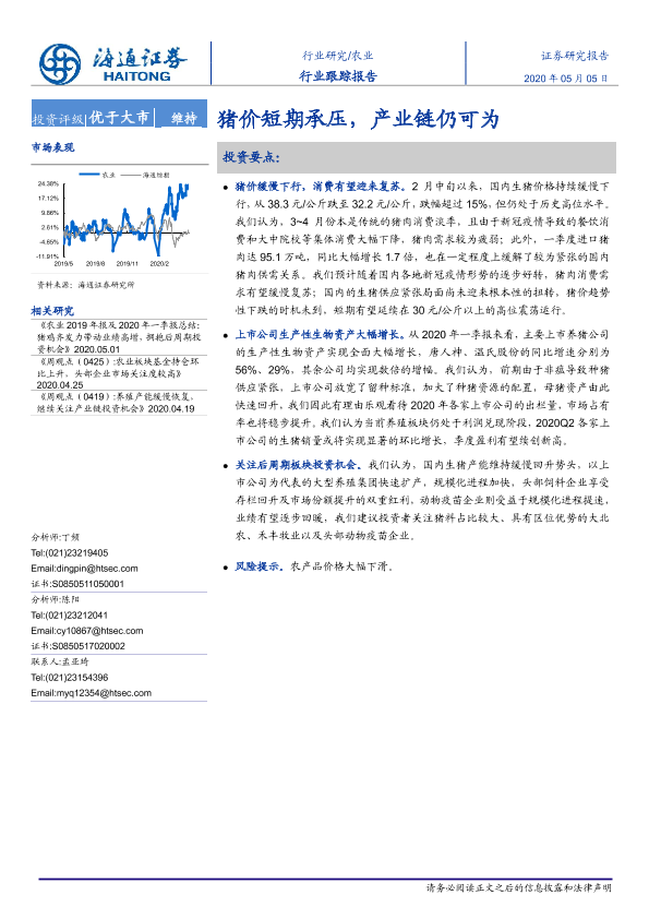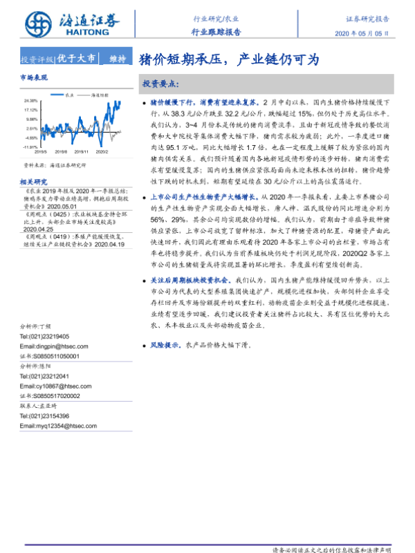 【海通证券】【20200505】农业行业跟踪报告:猪价短期承压,产业链仍可为-3页