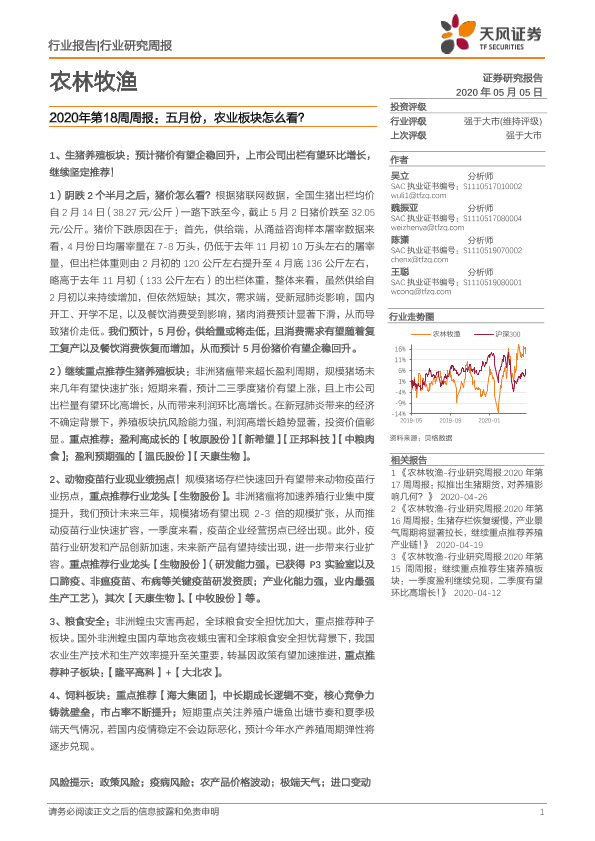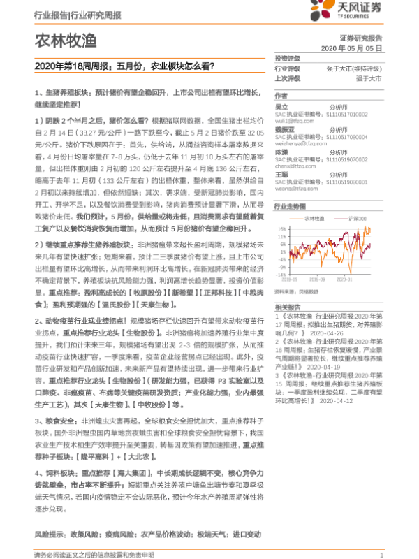 【天风证券】【20200505】2020年第18周周报:五月份,农业板块怎么看?-15页