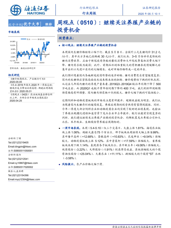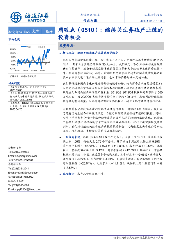 【海通证券】【20200510】20200510-海通证券-农业周观点:继续关注养殖产业链的投资机会-4页