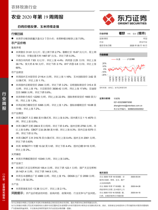 【东方证券】【20200510】农业2020年第19周周报:白鸡价格反弹,玉米持续走强-16页