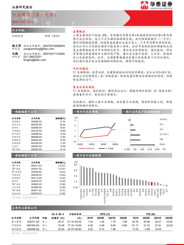 【华泰证券】【20200510】20200510-华泰证券-农林牧渔行业周报(第十九周)-14页