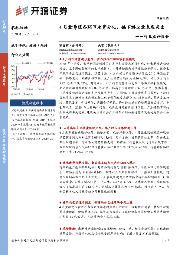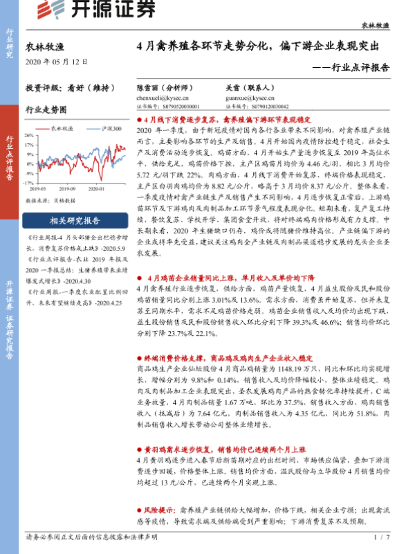 【开源证券】【20200512】20200512-开源证券-农林牧渔行业点评报告:4月禽养殖各环节走势分化,偏下游企业表现突出-7页