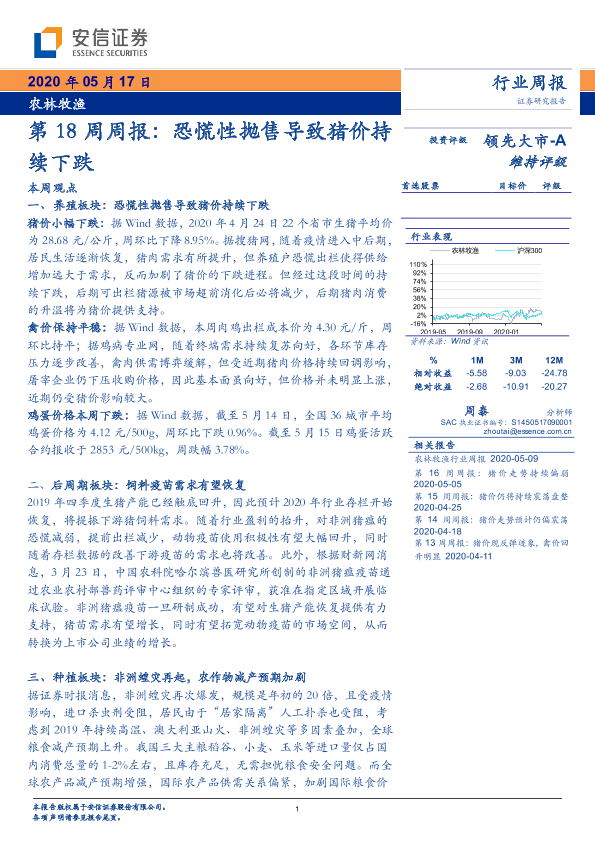 【安信证券】【20200517】第18周周报:恐慌性抛售导致猪价持续下跌-20页