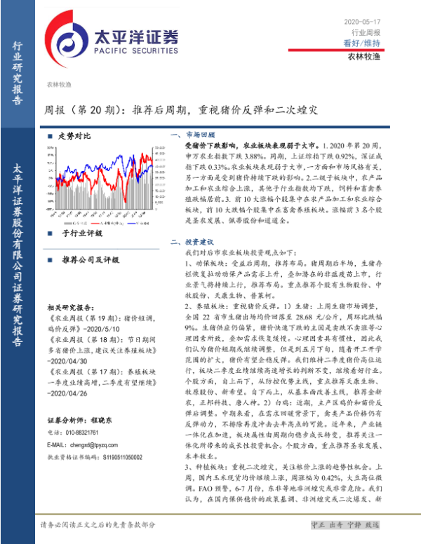【太平洋证券】【20200517】农林牧渔:周报(第20期):推荐后周期,重视猪价反弹和二次蝗灾-15页